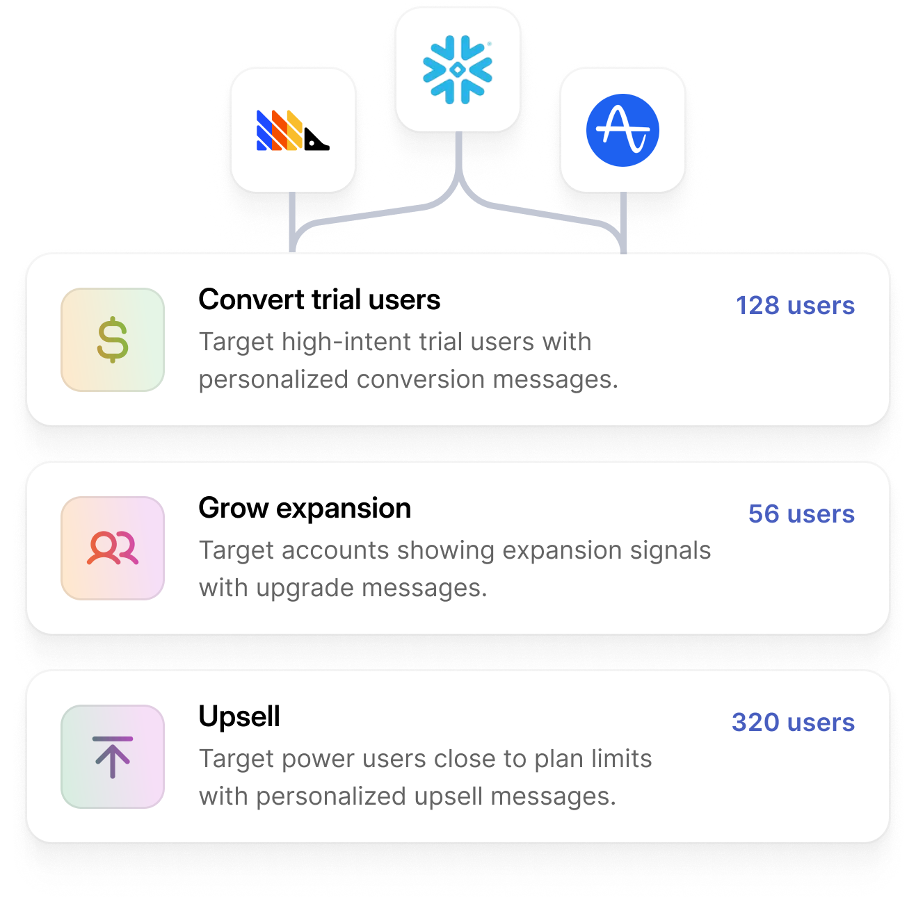 Our AI engine analyzes millions of behavioral signals to identify hidden patterns: which actions predict conversion, which users are ready to upgrade, which cohorts are at risk.